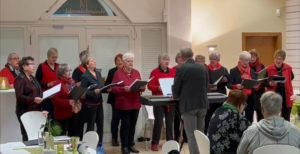 Ein Fest der Freude feierten die Sängerinnen des Scharmeder Frauenchores und luden zum Kaffee-Konzert ins BKM Forum ein. Bei selbstgebackenem Kuchen und duftendem Kaffee kamen die zahlreichen Gäste des Nachmittags schnell miteinander ins Gespräch. Ein musikalischer Querschnitt des Repertoires mit dem neuen und erfahrenen Chorleiter, Joachim Senft aus Paderborn, gab dann Einblicke in die Vielfalt des Chorgesangs. Erste weihnachtliche Lieder luden zum Mitsingen ein und besinnliche Kurzgeschichten und Gedichte stimmten auf die kommende adventliche Zeit ein. Seit Mai 2012 gibt es den Scharmeder Frauenchor, der in der Vergangenheit mit musikalischen Spaziergängen auf sich aufmerksam machte und in kleineren und größeren Konzerten sein Können zeigte. Die Initiatorin und Ortsvorsteherin, Gisela Buschmeier, dankte den Chorschwestern für ihren Durchhalte-Willen in den vergangenen Monaten der Coronazeit. Nur so sei das Fortbestehen des Frauenchores möglich gewesen und der kulturelle Beitrag zum dörflichen Miteinander als Bereicherung erhalten geblieben. Die zwanzig Sängerinnen aus Scharmede und den Nachbarorten treffen sich immer am Donnerstagabend im BKM Forum. Interessierte Frauen können jederzeit zum kostenlosen „Schnuppern“ für vier Wochen an der Chorprobe teilnehmen, immer donnerstags von 19 – 20.30 Uhr.