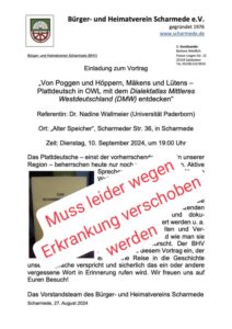 Verschiebung Vortrag über Plattdeutsch am 10.09.2024