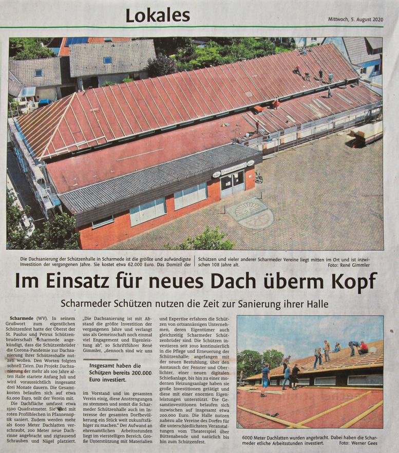 04.07. – 15.08.20 Renovierung Dach Schützenhalle // Fotos: W.Gees – Drohne: R.Gimmler