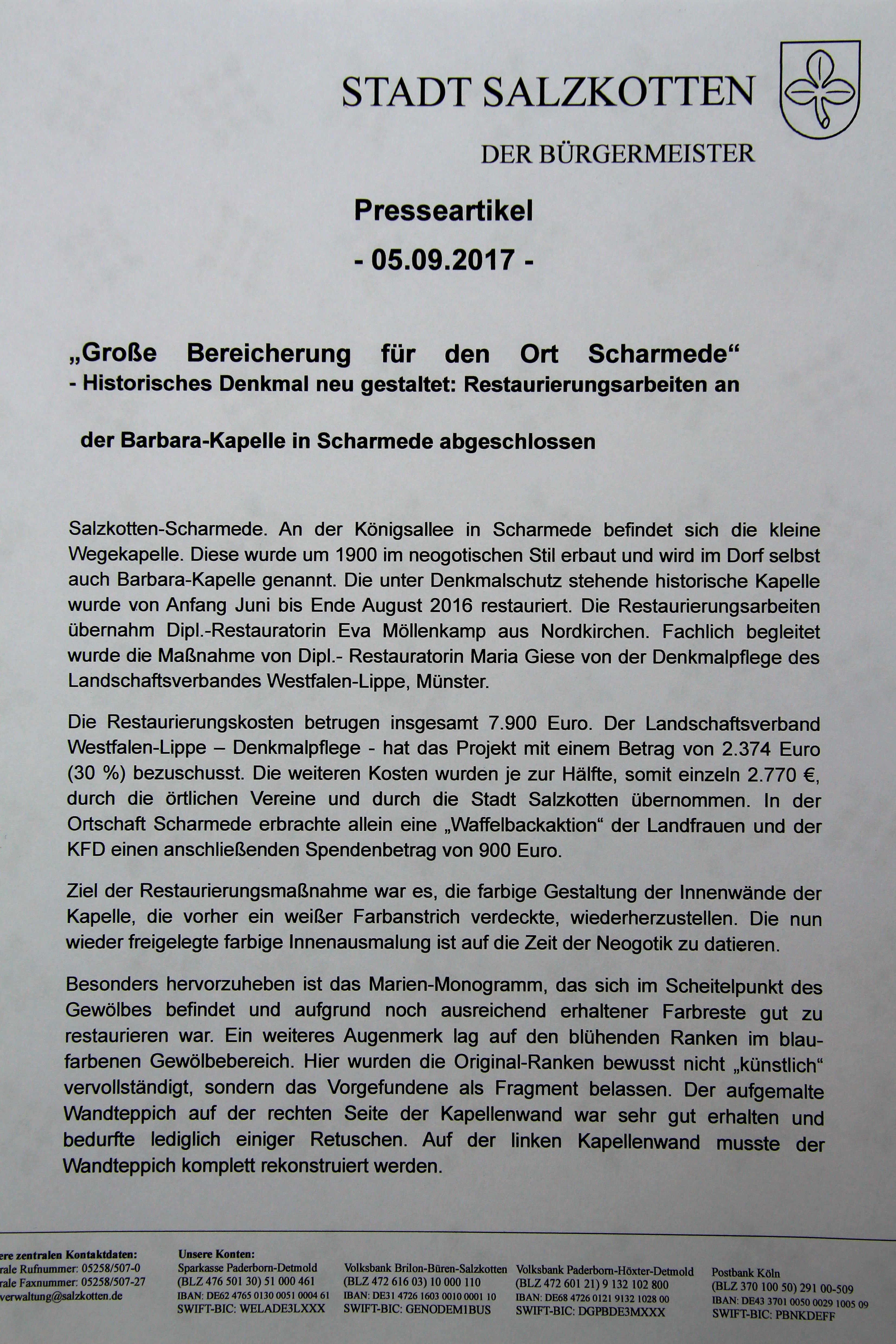 2017 Innenausmalung der Barbara-Kapelle renoviert