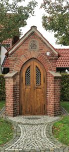 Diese Wegekapelle, Küns Heiligenhäuschen genannt, finden wir an der Kreuzung Schmiede- Ecke Wasserstraße. Es wurde im Jahr 1900 im neugotischen Stil aus rotem Backstein errichtet.