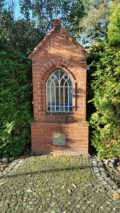 Dieses Heiligenhäuschen aus rotem Backstein finden wir an der Wegkreuzung Rothe- /Stangenweg. Es wurde 1911 von Johann Koch im neugotischen Stil errichtet.