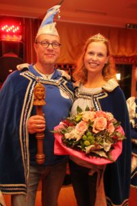 Fehlt nur noch das Wichtigste des Abends. Das neue Prinzenpaar des Karnevalvereins Blau-Weiss 1974 e.V. Scharmede musste sich nicht lange überzeugen lassen. Sie ist Vollblutkarnevalistin und das nicht nur in Scharmede, sondern auch in Delbrück. Er ist neu im Beirat des Vereins und nimmt das närrische Zepter gerne in die Hand. Raphaela „ Die Strahlende“ und Markus „Der Gesellige“ Baurichter regieren in der kommenden Session das närrische Treiben in Scharmede. Mit ihrem Motto „Mit Spaß und Frohsinn – ohne Radau, feiern wir Karneval: Knolli Knolli Schabau“ stehen sie schon jetzt als Sinnbild für die kommenden Veranstaltungen.