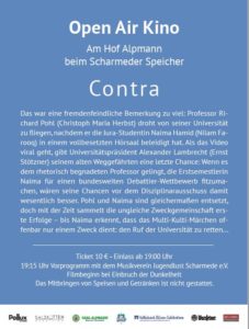 Open Air Kino in Scharmede am 9.9. mit dem Film Contra