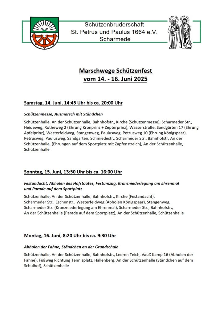 Schützenfest in Scharmede vom 14. bis 16. Juni 2025