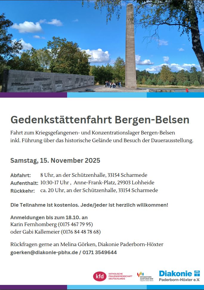 kfd Tagesfahrt zusammen mit der Diakonie Paderborn-Höxter zur Gedenkstätte Bergen-Belsen.