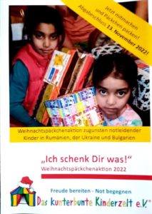 Es gibt noch ein weiteres Projekt des kunterbunten Kinderzelts, das wir Euch ebenfalls ans Herz legen möchten: Die Weihnachtspäckchenaktion 2022. Besonders für die
