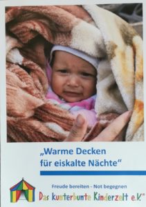 Das internationale Hilfswerk „Das kunterbunte Kinderzelt e.V.“ hat es sich zur Aufgabe gemacht, den Ärmsten der Armen nach besten Kräften zu helfen. Deshalb startet wie alle Jahre wieder auch dieses Jahr das Projekt „Warme Decken für eiskalte Nächte“.